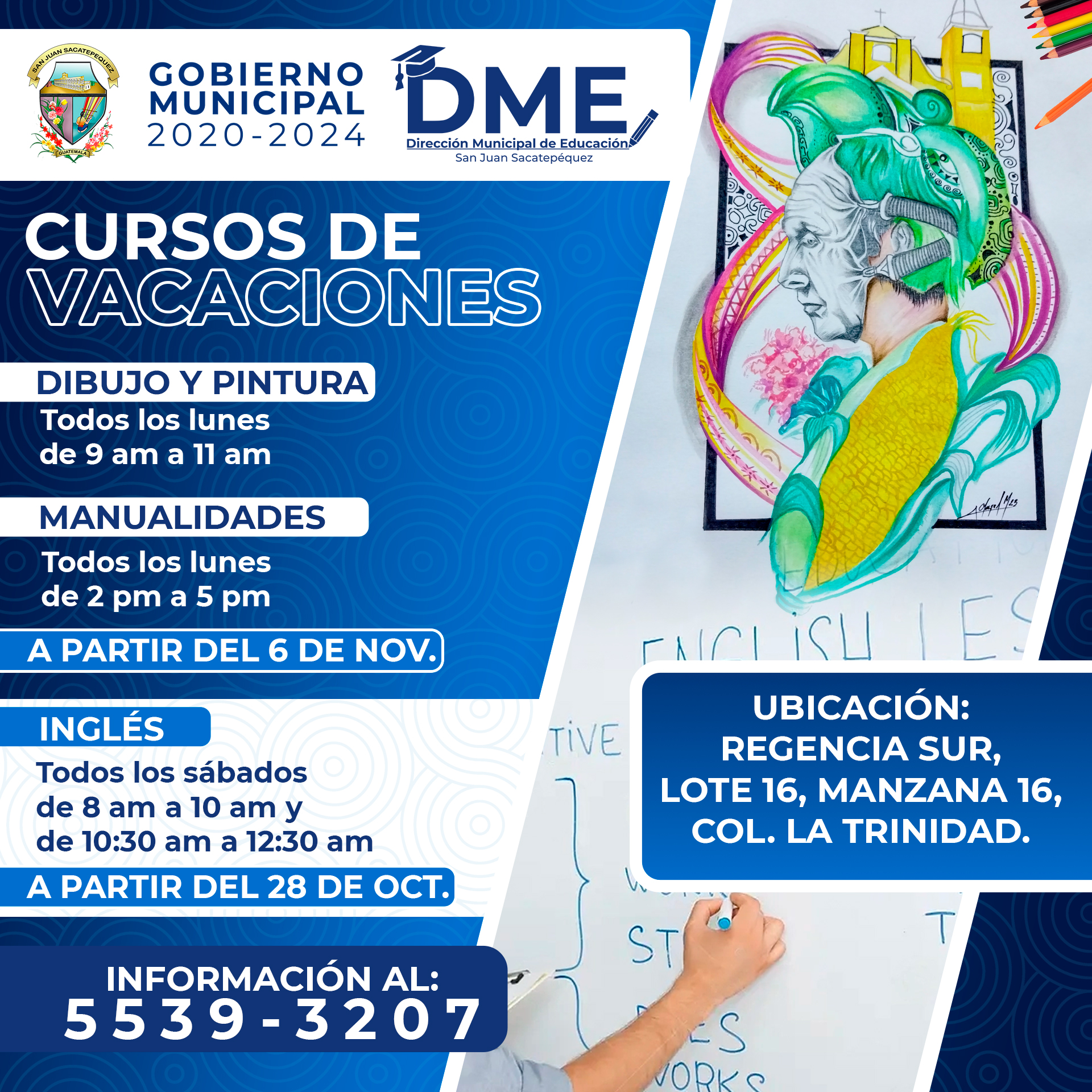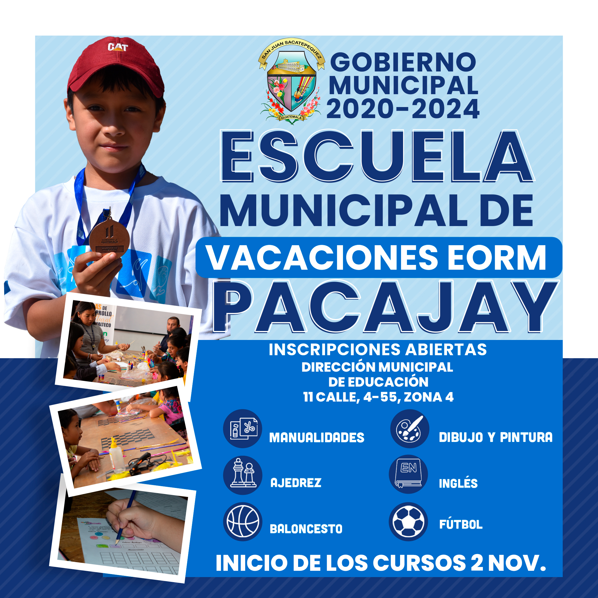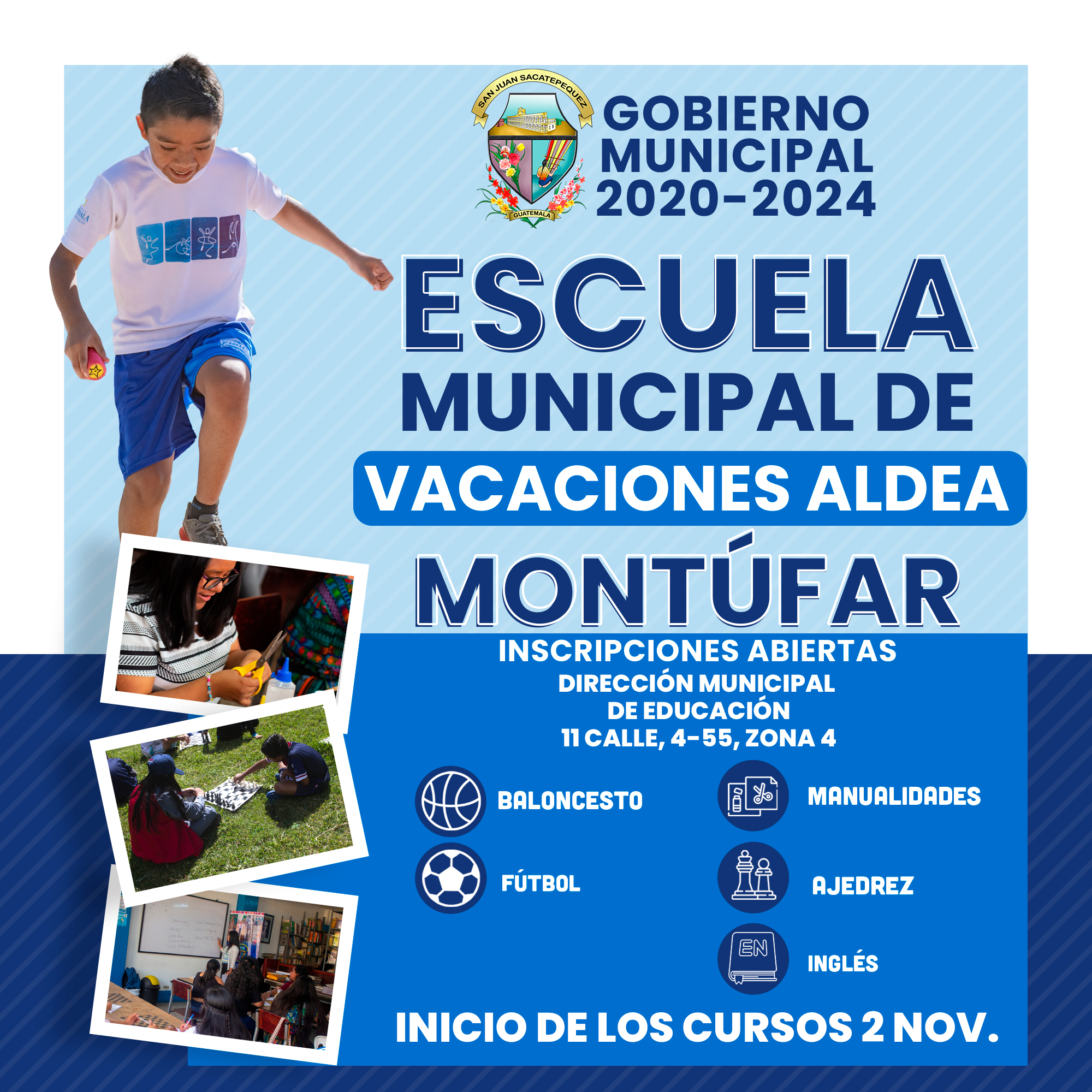 La Municipalidad de San Juan Sacatepéquez, invita a los niños y adolescentes a participar en los cursos de vacaciones que se realizarán en las siguientes sedes: